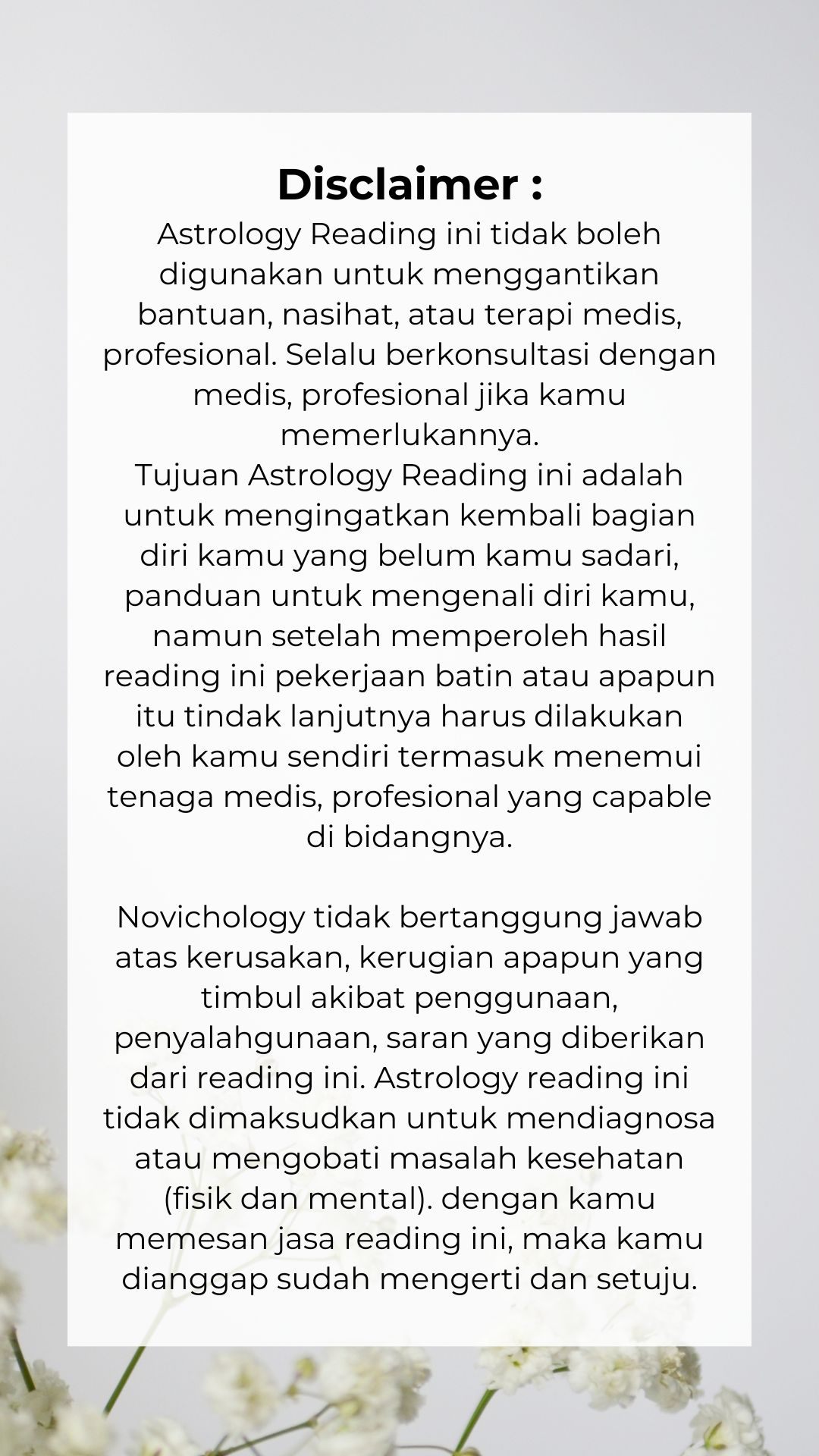 Untuk akurasi hasil pembacaan, mohon isi Data-Data di bawah ini dengan benar, cek kembali. Novichology tidak bertanggung jawab atas kesalahan penulisan data oleh kamu :)